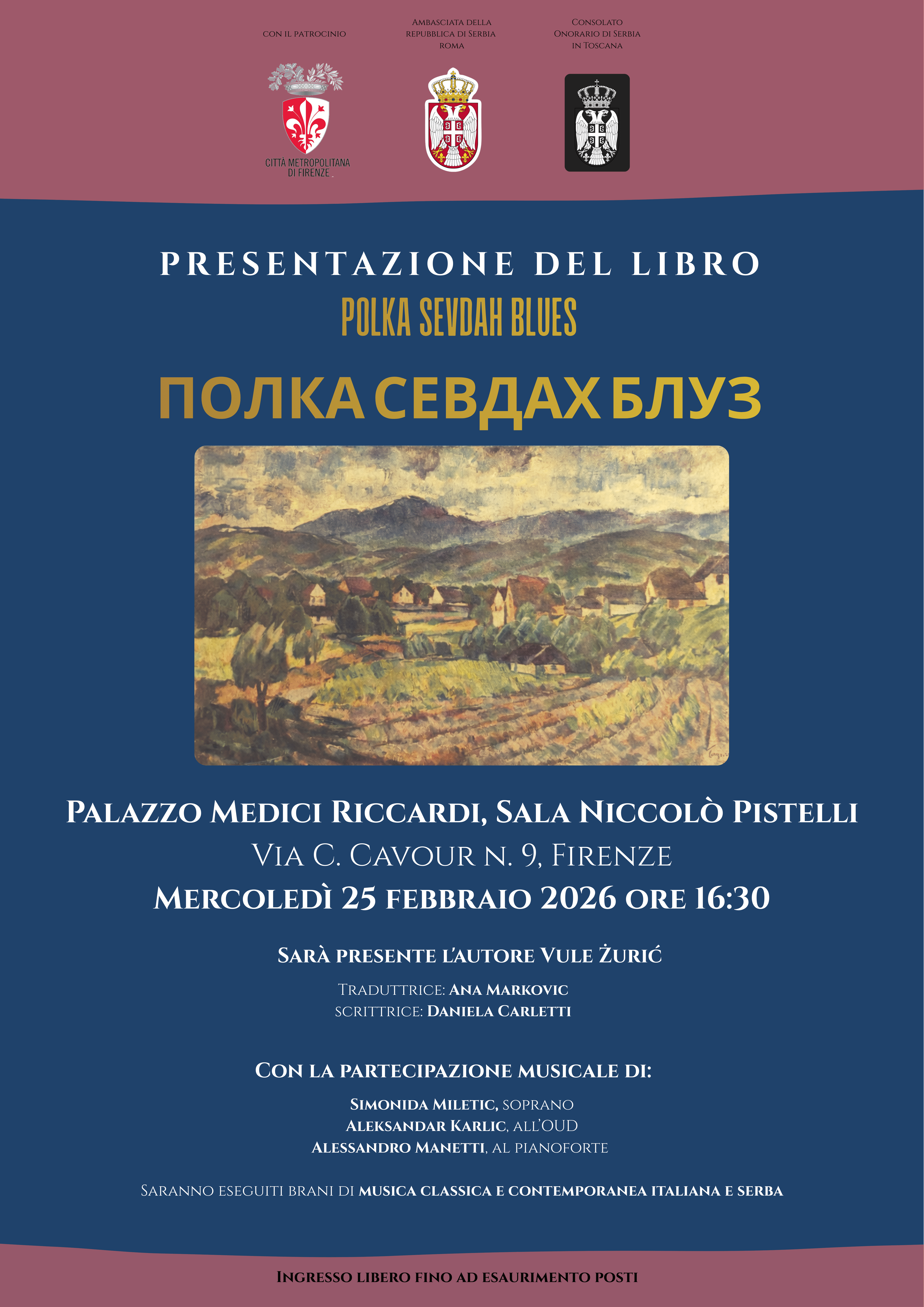 Pomeriggio culturale con Vule Zuric e Simonida Miletic Mercoledì 25 febbraio 2026, ore 16:30, Palazzo Medici Riccardi – Firenze